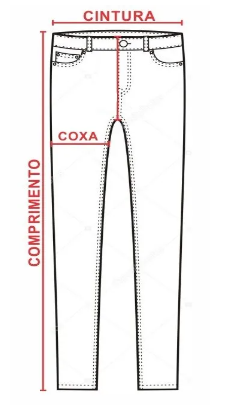 P: Cintura 35 a 44cm / Coxa 29cm / Comprimento 106cm